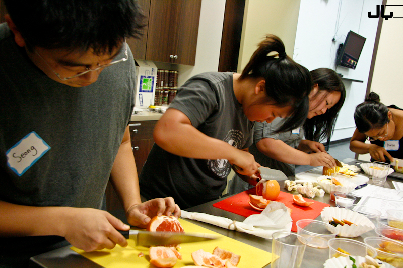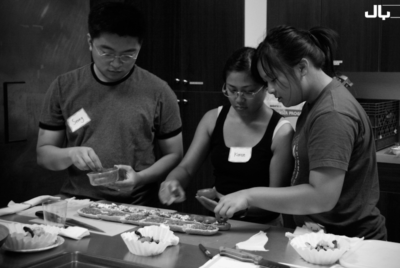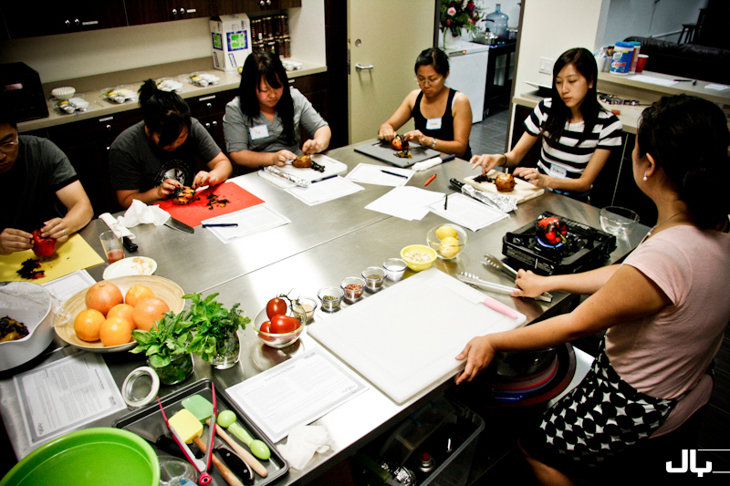 Well it’s been a while since updating, but that’s cuz I’ve been busy!  Word got around that I was running cooking classes and Pastor Peter from our church asked me if I could teach a class in the church kitchen, as a summer activity.  I’ve been wanting an outlet to serve so I said yes and it turned out to be a lot of fun.  I required everyone to bring their own cutting board and sharp chef’s knife, and I of course provided the rest.  We did about 4 different recipes reflecting the tastes of summer, focusing on fresh fragrant herbs, tomatoes, bright colors and light eating.