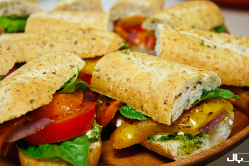 Multi-grain baguettes hug the juicy, fresh sandwiches