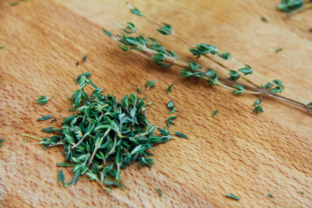 and mince up fresh thyme. Oh, and if you don’t have fresh thyme, used dry, but just cut the measurement in half for dry, since it’s more potent than fresh. But in my opinion, the fresh thyme makes it look prettier too, so I suggest using fresh for aesthetic purposes.