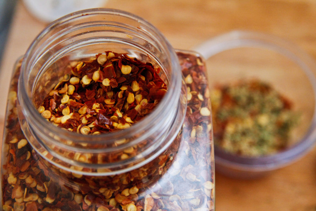 and crushed red chili flakes, which will add a nice spicy kick. Notice my big jug of chili flakes? Yeah you know how I do!