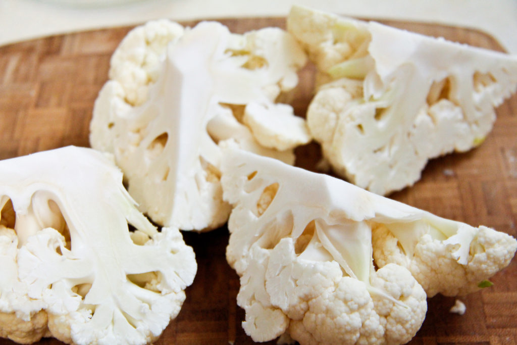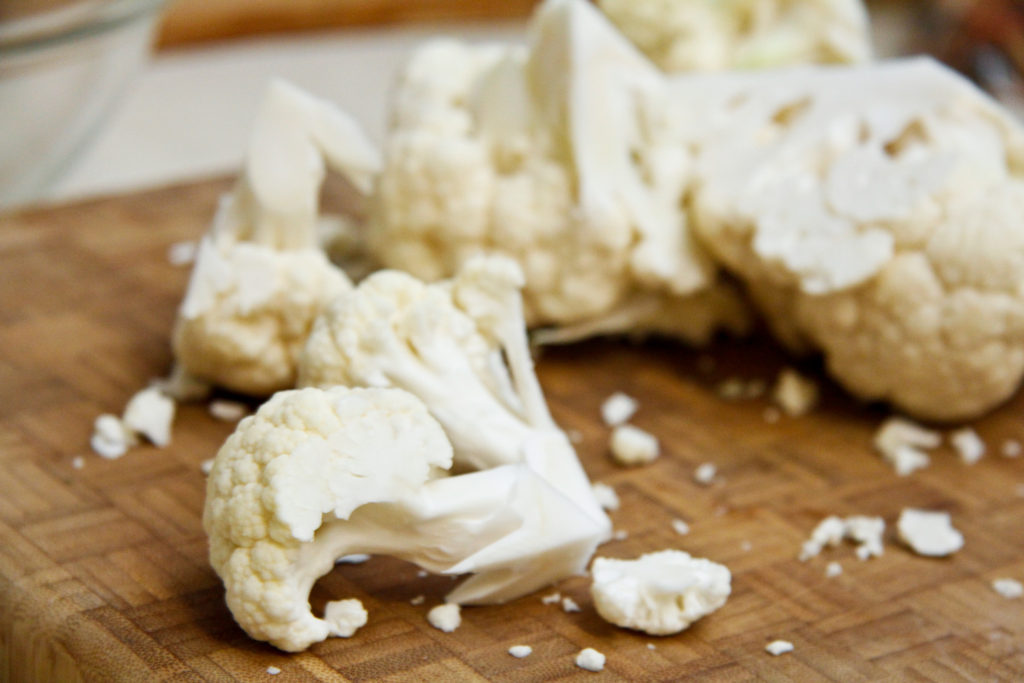 So you cut your cauliflower into florets, but make sure they’re not too small.