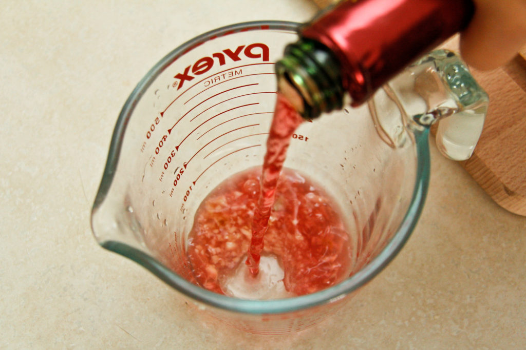 It all starts out with red wine vinegar. Yeah, technically you can use whatever vinegar you want, but you know what… red wine vinegar has a particular sharp taste to it that I think can’t be replaced.