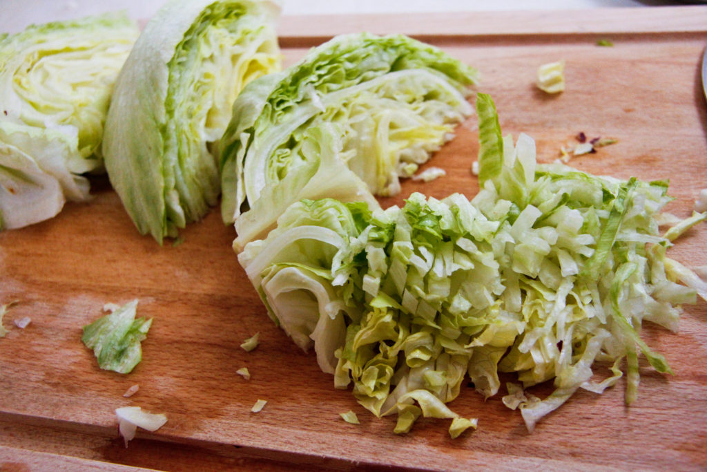 - 1 head of iceberg lettuce cored, and finely chopped or shredded.