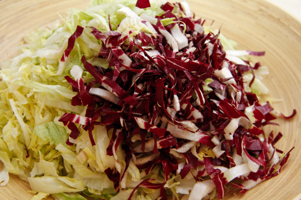 And then don’t forget the raddichio…. gorgeously red and slightly bitter raddichio really gives this salad character and balance. It’s just not the same without it.