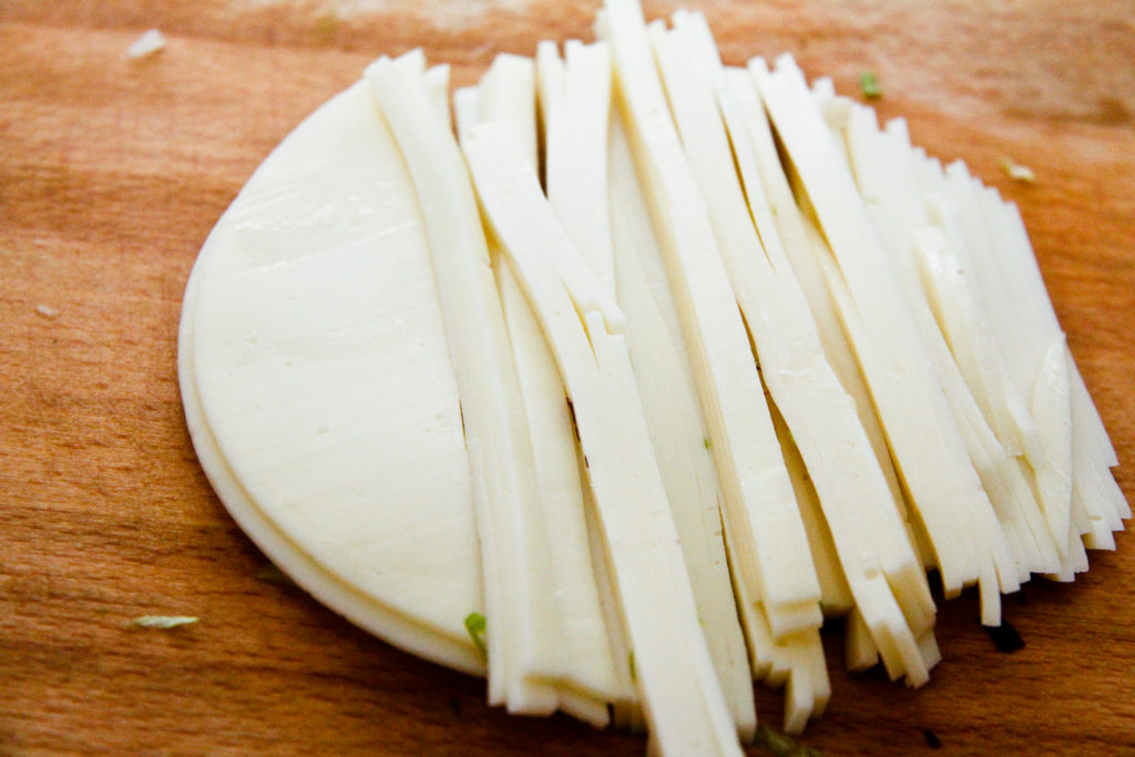 - 4 pieces of provolone cheese thinly sliced into strips