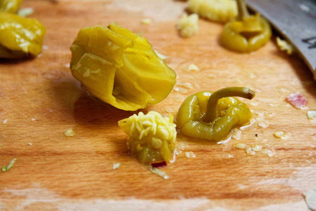 - 6-8 pepperoncini stems & seeds removed, and thinly sliced