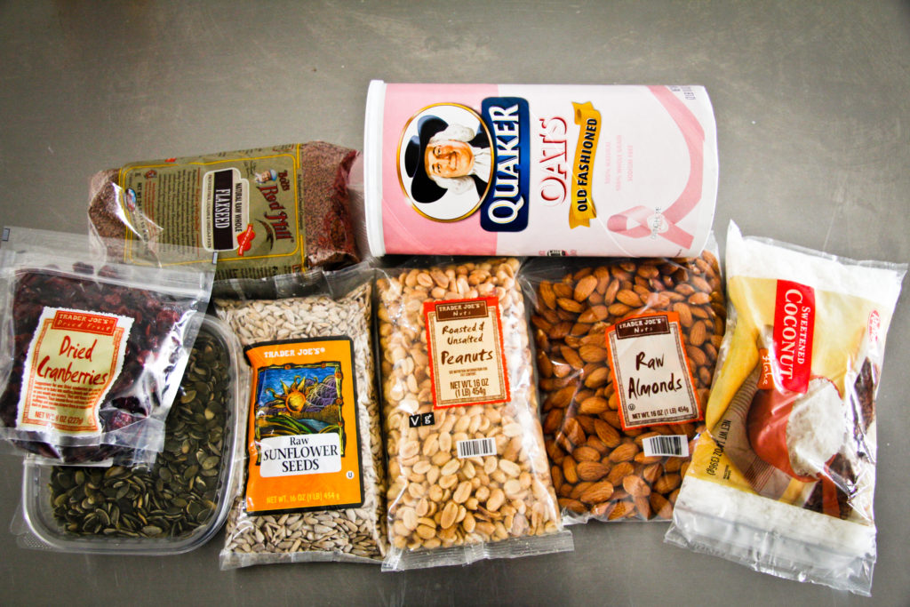 Seeds go in, such as pumpkin, sunflower, and even flax seed, just for good measure.