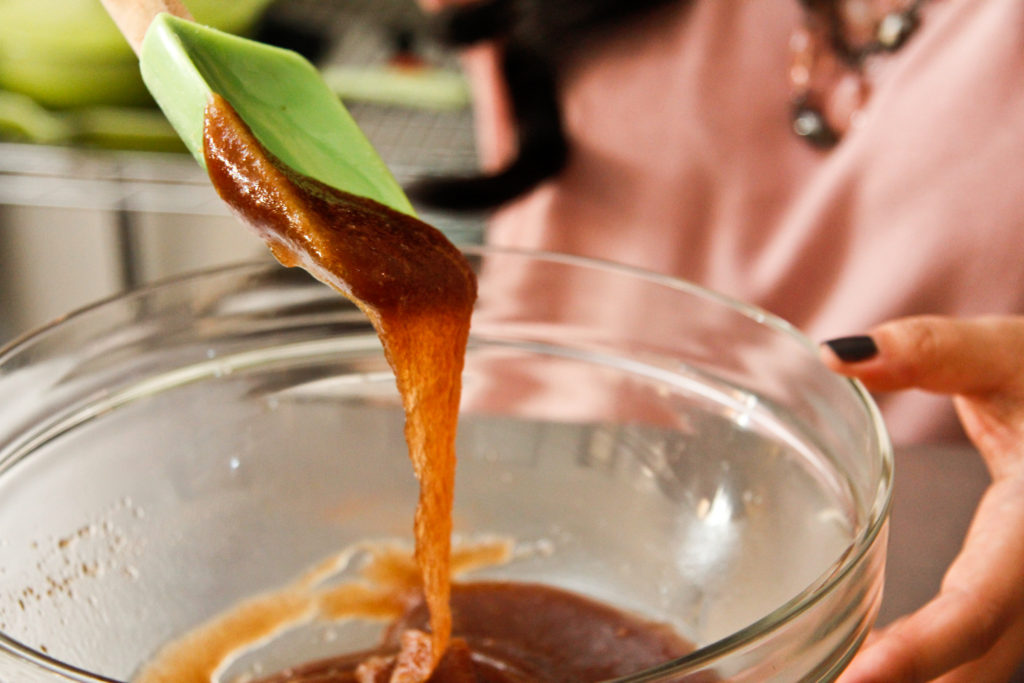 And use some arm muscle. Okay, use a lot of arm muscle. Be patient. You’ll eventually see all the dry oats become lightly kissed with the glaze. It’s okay if it starts clumping. It’s supposed to. Keep stirring my friend.