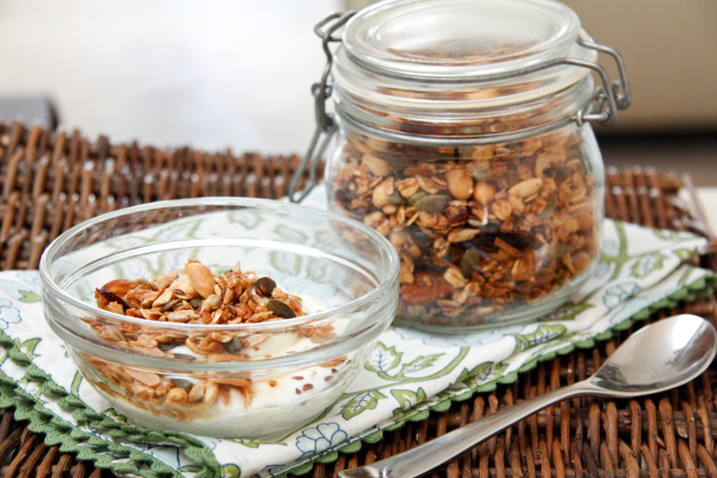 Even after sharing our batch, we both ended up with a lot of granola, so this recipe is perfect for gifts! Just find some pretty glass jars or good quality tupperware and you’re in business! If you want to make this granola for your nut allergy friends, you still can! Just double up on the oats or use anything that might be texturally interesting, such as wheat germ or flax seed. This recipe is quite forgiving so don’t be afraid to play with your food. Use whatever you want, or omit what you don’t want. Trust me, I won’t mind.