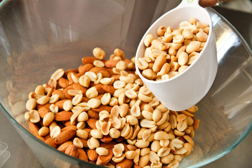 Then you get nuts! We chose whole unsalted almonds and peanuts. Once they get toasty, they are so good.