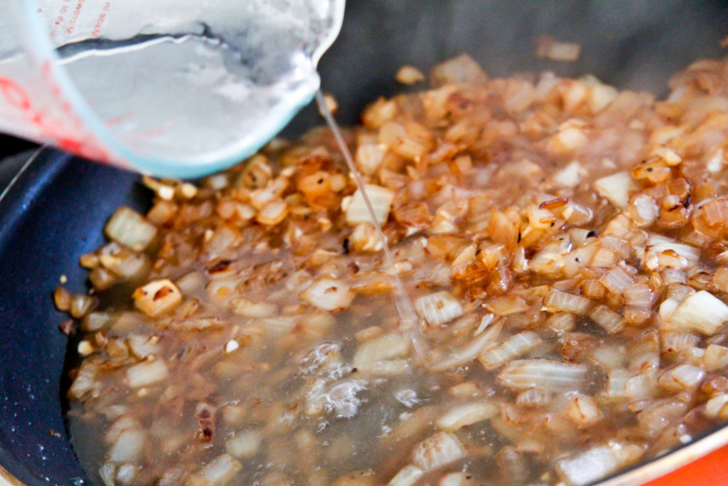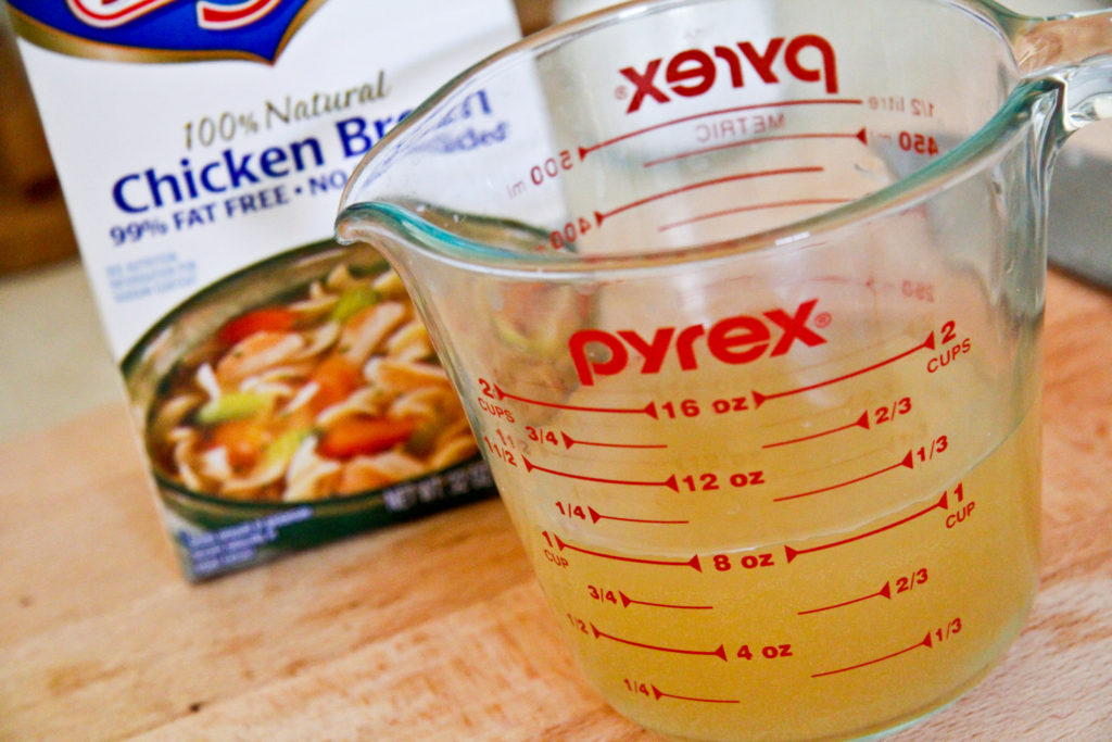 Add that chicken broth to the pan, followed shortly by the…