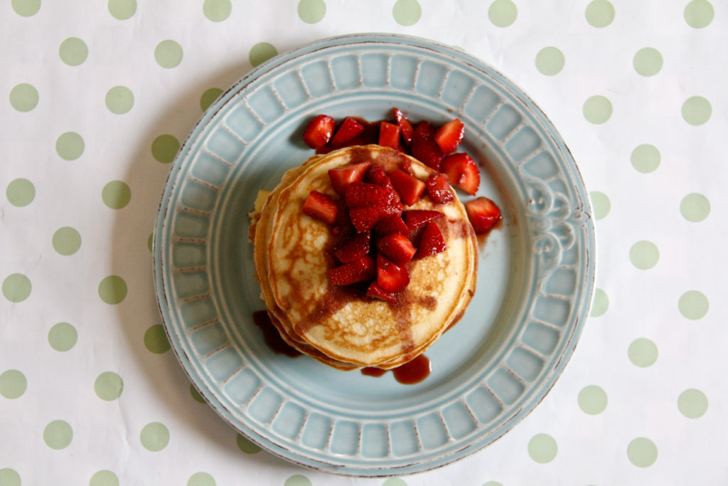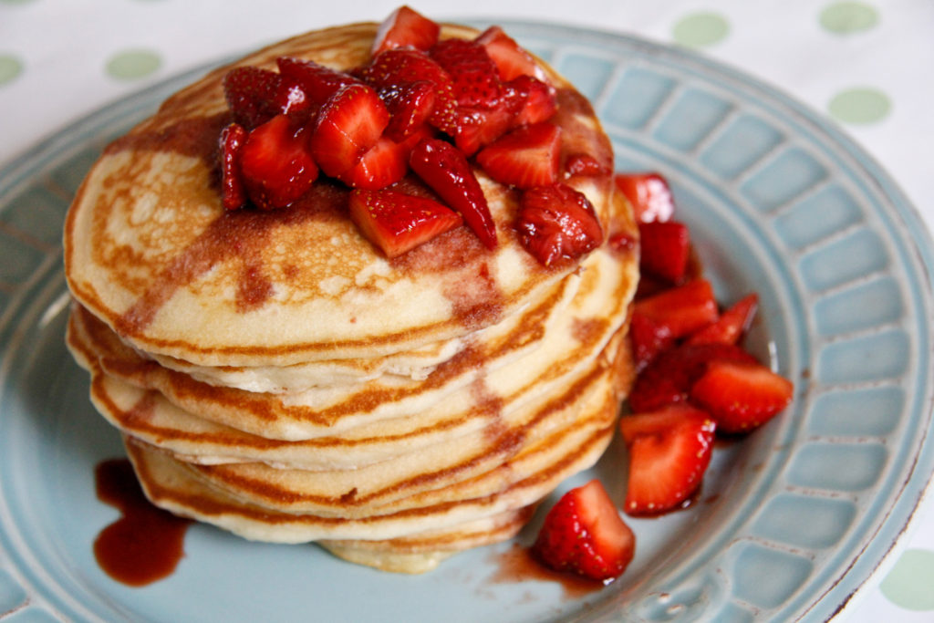 Now eating pancakes with just maple syrup is great. But if you want to make things a little more special, try topping them with maple syrup AND balsamic strawberries!