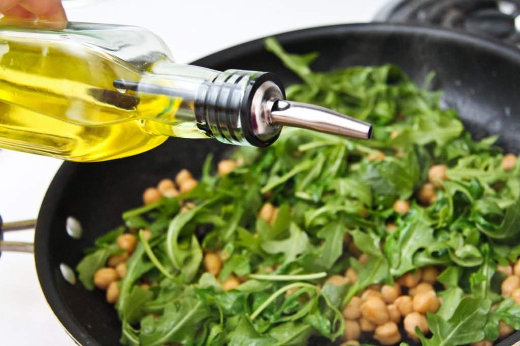 - Meanwhile, in a saute pan, heat 1 tablespoon of olive oil and add the ground cumin. Stir it around for a few seconds in the oil. Add the drained chickpeas, along with the salt and lemon juice. Turn the heat off and add in your arugula, along with the remaining 1 tablespoon of olive oil. Toss to wilt the arugula slightly and serve with the chicken. Serve alone, or with a little salsa on the side.