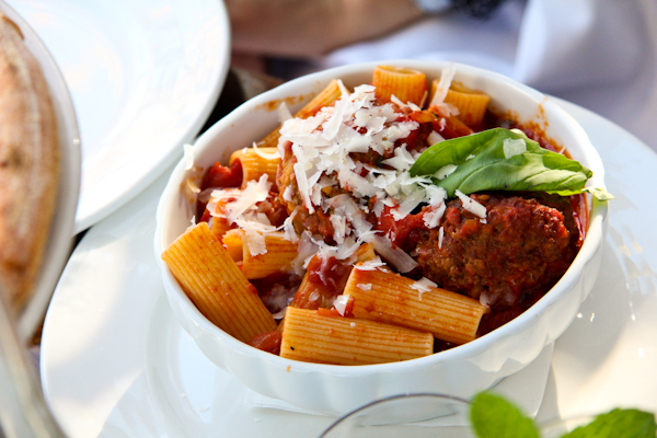 We also had some meatballs and marinara… hello one lonely basil leaf.