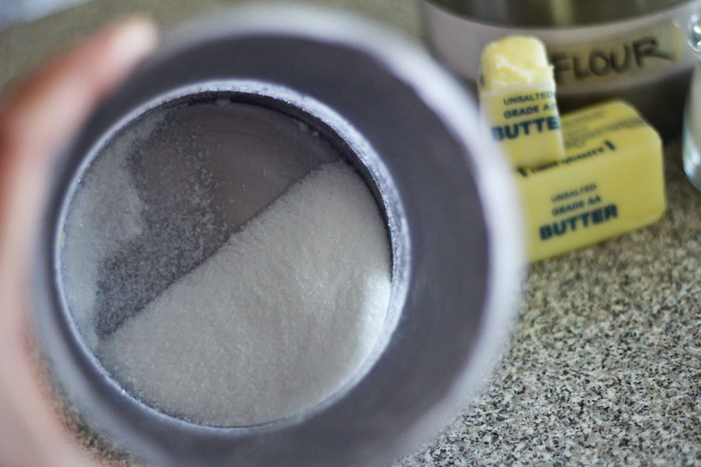 I usually have a pretty stocked pantry, but on this day, I had just a small amount of sugar left. Before looking more carefully at the recipe, I almost let out a sad defeated whimper when I thought I wouldn’t be able to bake after all. But luckily, it was just enough, because all you need is ⅓ of a cup!