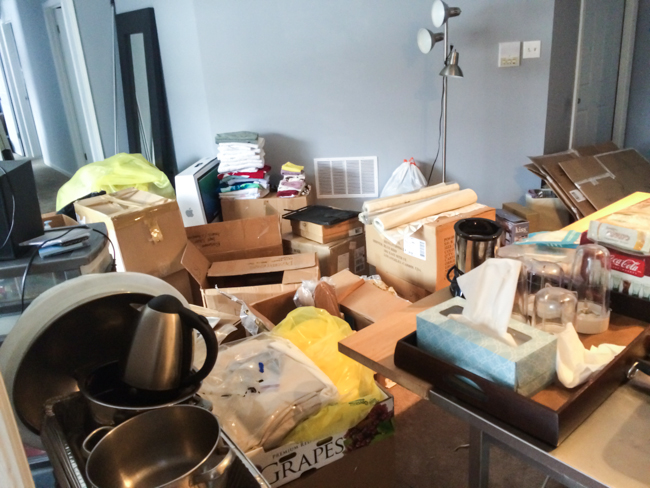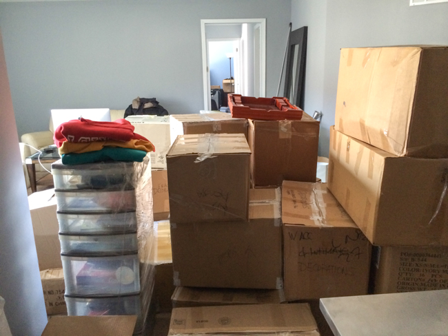 The next day, as I started to unpack our boxes, our living room turned into this hot mess. I couldn’t open just one box at a time like a normal person because when we moved out of California, we had no time to be organized packers, so things were just thrown in anywhere.