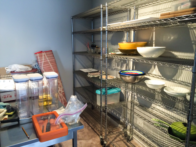 And we assembled our trusty metal racks next so that we could get our dishes and cooking equipment off the ground and stored away easily.
