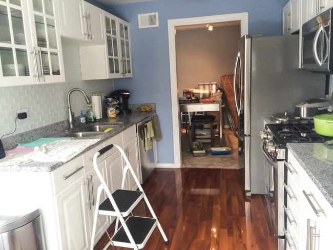 The first week in our new place was an “adventure,” and not what we expected at all. The day before we were supposed to move into our condo, Joe and I went there to clean it. What we thought was going to take a couple hours, ended up being an all-day / all-night affair. There was just SO much dust, dirt, rubble, and paint splatters left behind from the renovation. It was as if every surface was covered in a layer of dusty film. But on top of that, we both had colds and were already exhausted from battling our constant coughing and runny noses in between all the scrubbing.