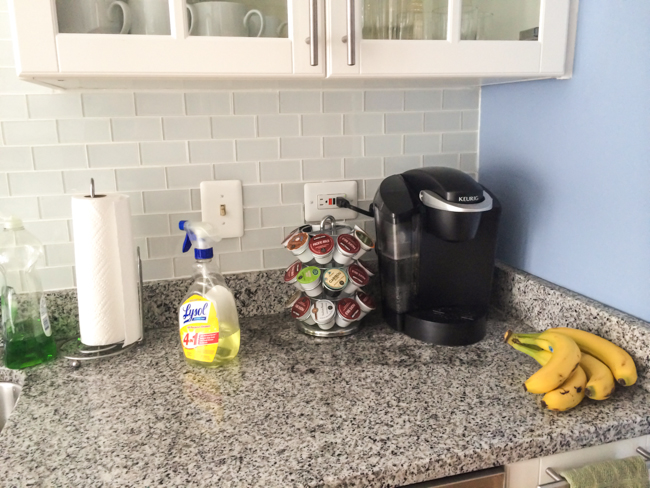 As for me, I dug out our coffee pods, mugs, and Keurig machine first before anything else! Having my morning coffee was super important. It made me feel more comfortable in our new place, and it was fuel before I had to attend to the chaos.