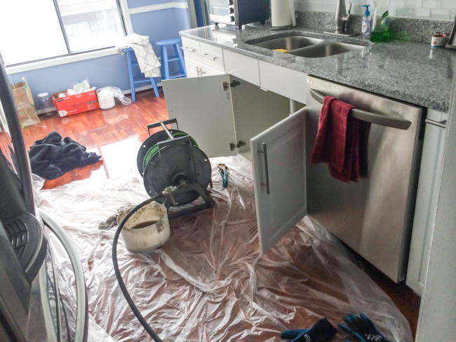 But then our downstairs neighbor told us that there was backup in their sink when we turned on our kitchen faucet. We thought that was weird. So a plumber was brought in and it turned out the problem wasn’t us. A huge pipe was broken underneath the ground of the entire building, and the backup was coming from the dirt and gravel from the ground! So it became a huge ordeal. Plumbers were in and out of our place constantly, to check out the pipes, and do some high pressure deep cleaning. And we couldn’t use our kitchen sink.