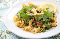 • ¾ pound short pasta such as campanelle or orecchiette