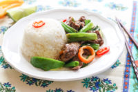 But if you don’t have flank steak, use skirt steak, sirloin steaks, or boneless short ribs!  I dunno… I’m just listing all the cuts of beef I usually find at Costco right next to the flank steak.  And then all you need is a side of rice, quinoa, or noodles!  So make this stir fry when you have guests over… or eat it happily all by yourself in front of the TV.  Leftovers are great too!
