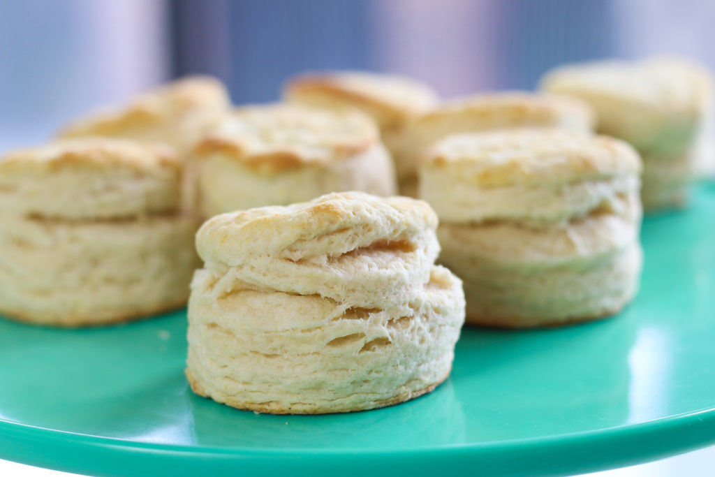 • Place the whole tray in the refrigerator for 10 minutes. This will ensure the butter is cold, which forms steam pockets and creates height in the oven. Pop it into the oven until puffed and lightly golden brown on the tops, about 11-12 minutes. The bottoms will be darker. Place biscuits on a cooling rack. Serve while still warm, or warm them up again in the microwave. Keep extras in the freezer and warm them in the oven or the microwave.