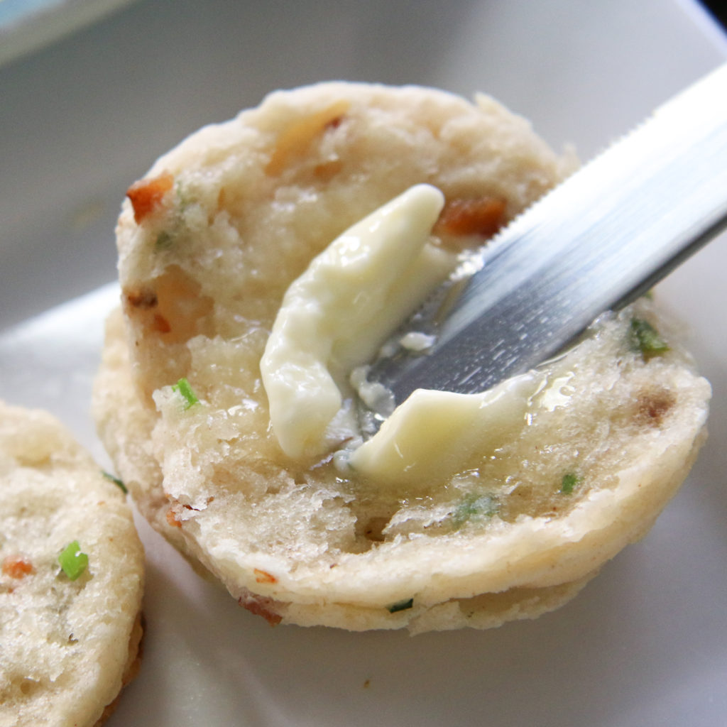 But if you’re in the mood for something a little more plain, then don’t fret my pet because you can always make this recipe exactly the way it is, with the bacon and chives omitted.  Then boom… all you need is butter and jam….and a cup of coffee of course!