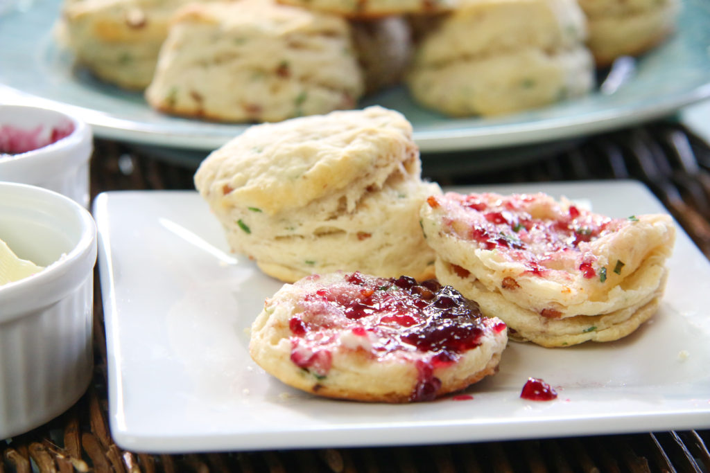This recipe is adapted from Cooking Light. Once you get the hang of making these biscuits, you’ll be making them all the time. They’re fluffy, flaky, and full of bacon. Try them with butter and jam and you’ll thank me.
