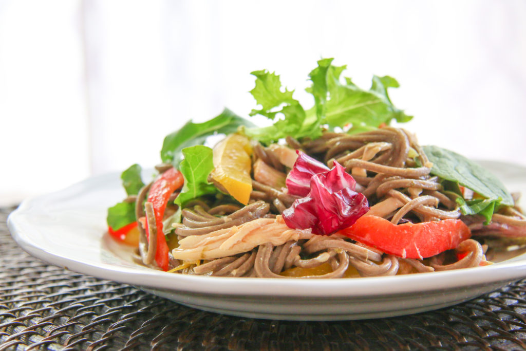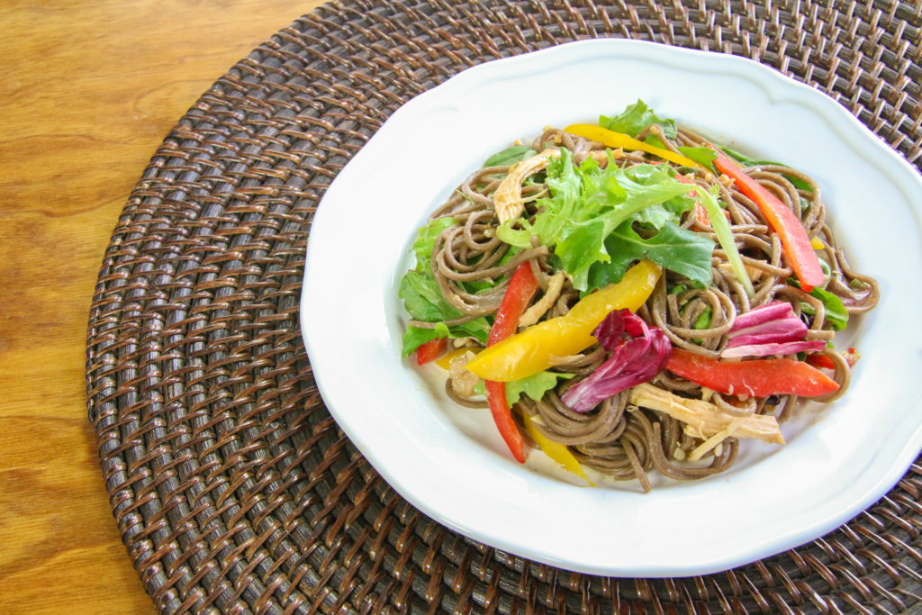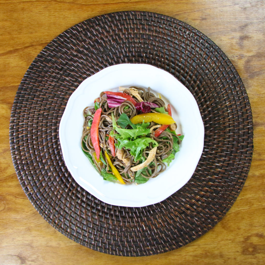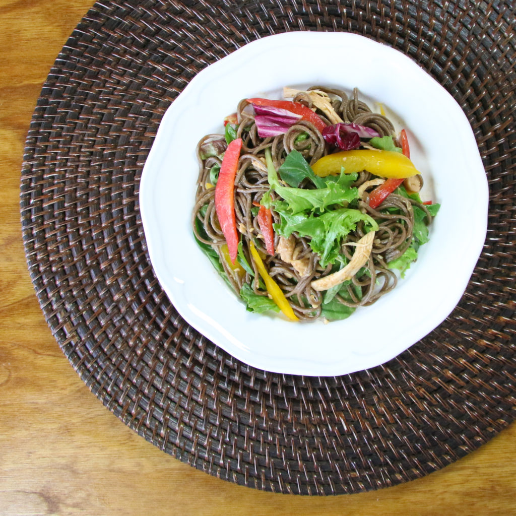 When it’s too hot outside to function, there’s nothing better than eating a chilled bowl of noodles, chicken, and fresh veggies.  It’s crunchy, refreshing, and satisfying.  You can watch how I easily whip up this Soba Noodle Salad in EPISODE 16 of Bits & Pieces:
