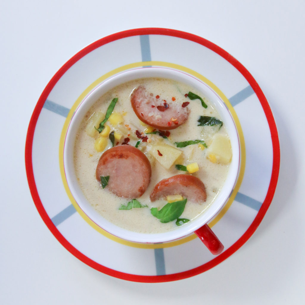 But if you are part of the traditional chowder fan club and crave a thicker consistency, then just scoop up a couple ladles of the broth, cooked potatoes, and corn kernels and give it a whirl in the blender. Then you can add it back to the pot, and the chowder will automatically thicken up like magic.