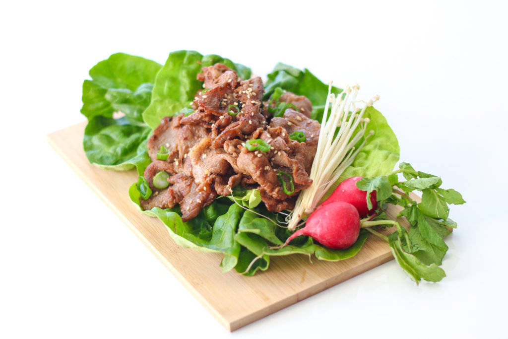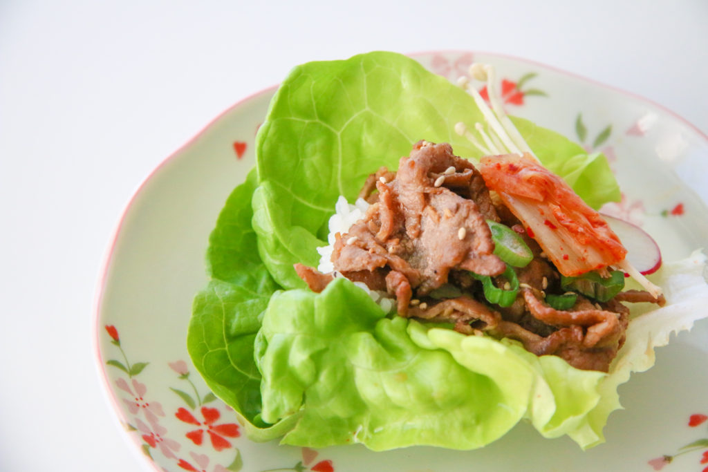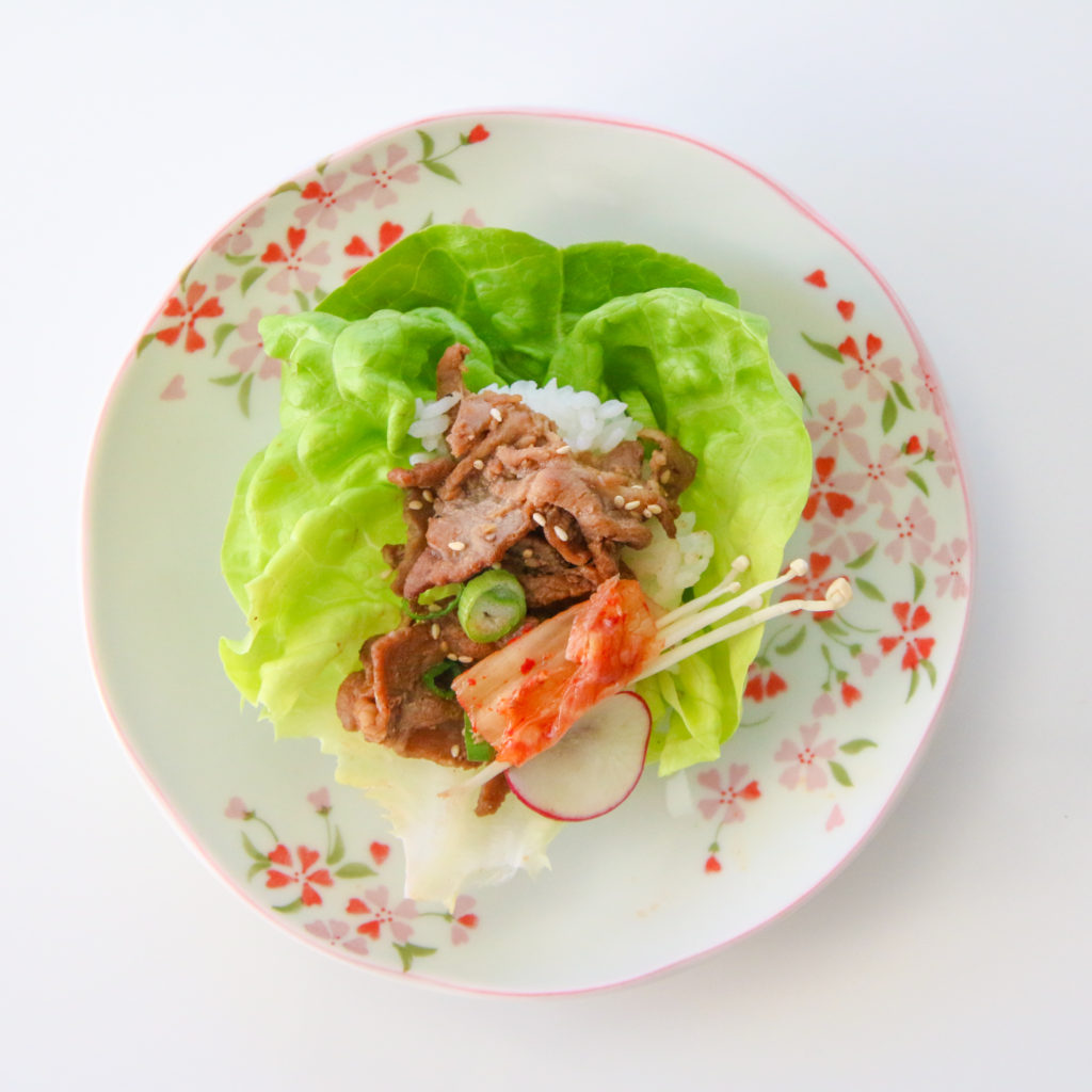And even though it’s called “barbecued” meat, you don’t have to cook it on a grill.  I chose to use my cast iron pan, but I just made sure it was screaming hot so the thin slices of pork could get a nice caramelization without overcooking.  As soon it comes off the pan, you do want to eat it right away while it’s still sizzling.  It’s just not the same when it cools down.  Maybe that’s why Koreans like cooking their meat right at the table!