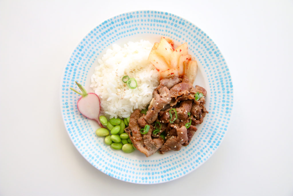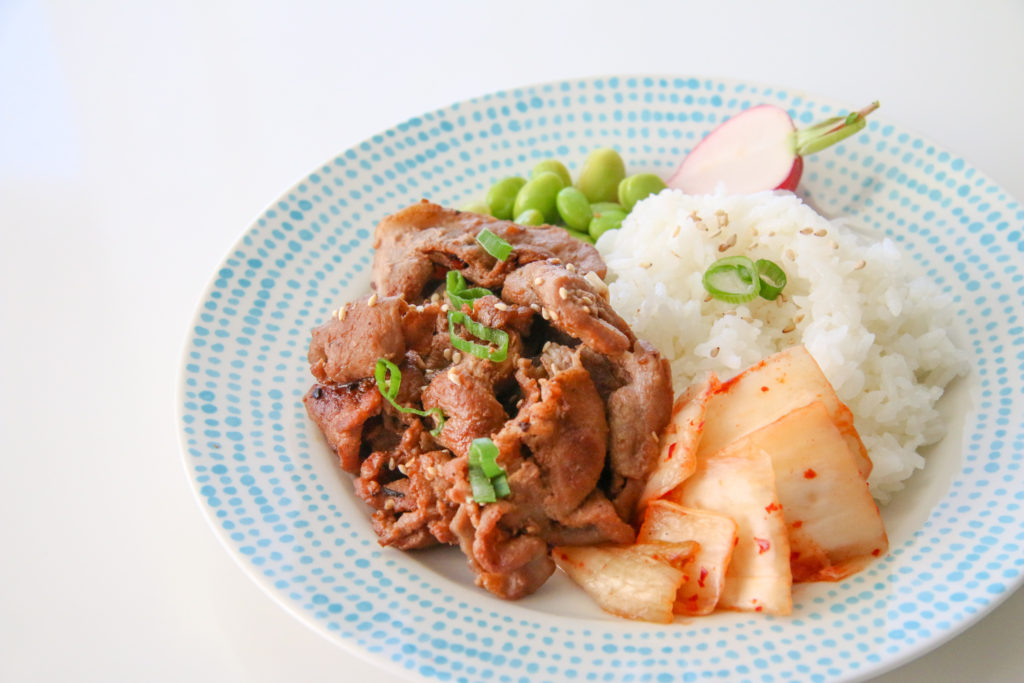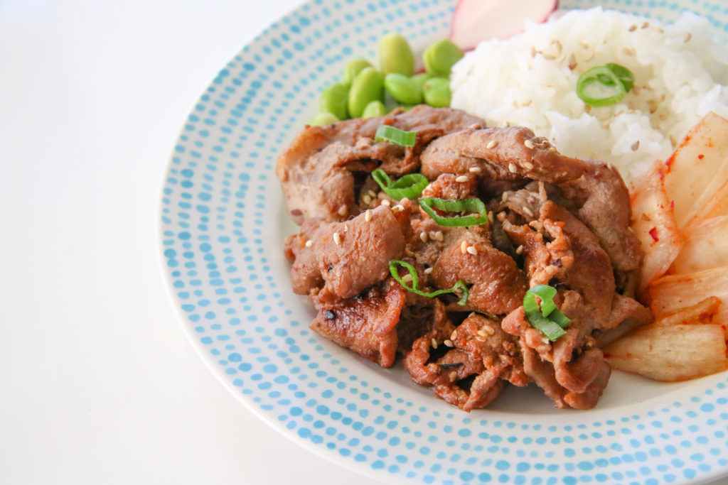 TIP: Do yourself a favor and buy the pork from a Korean grocery store because it’s already thinly and uniformly sliced. It’s sometimes known as “Pork Bulgogi.”