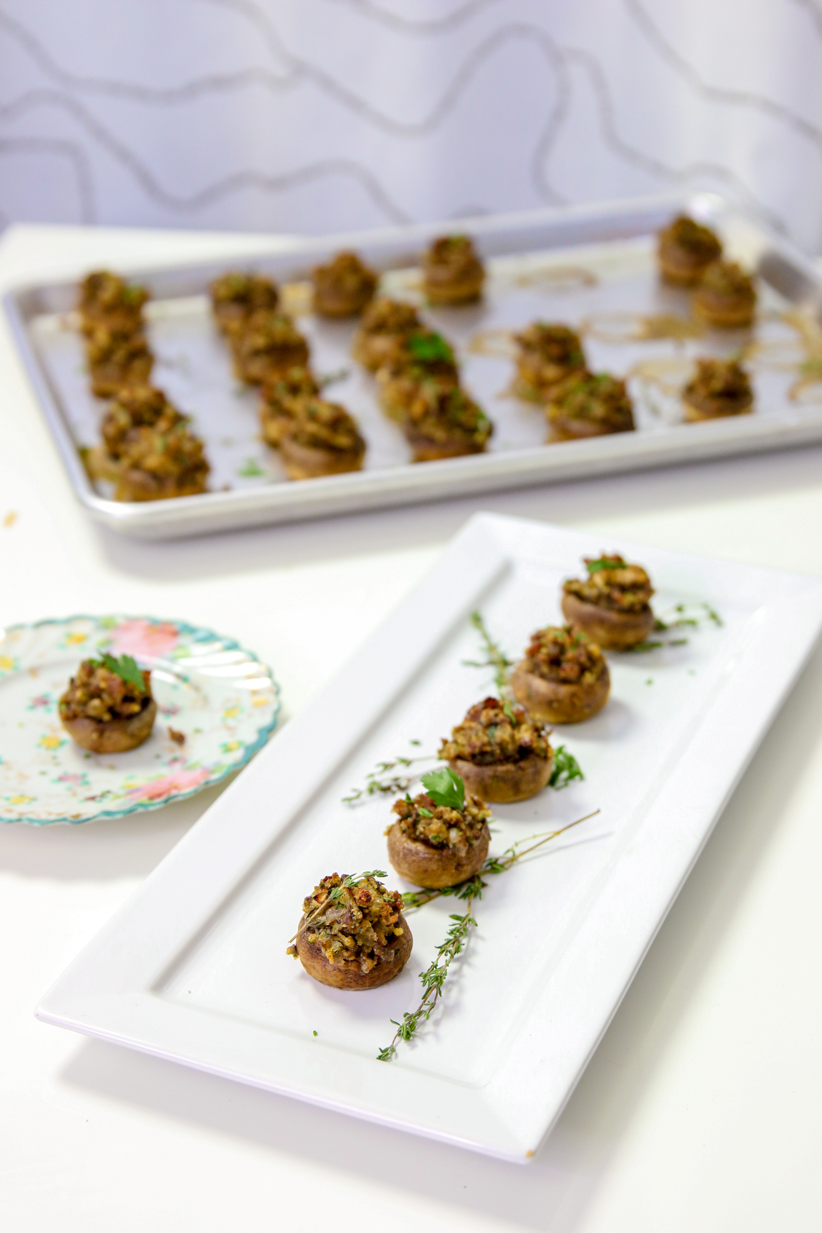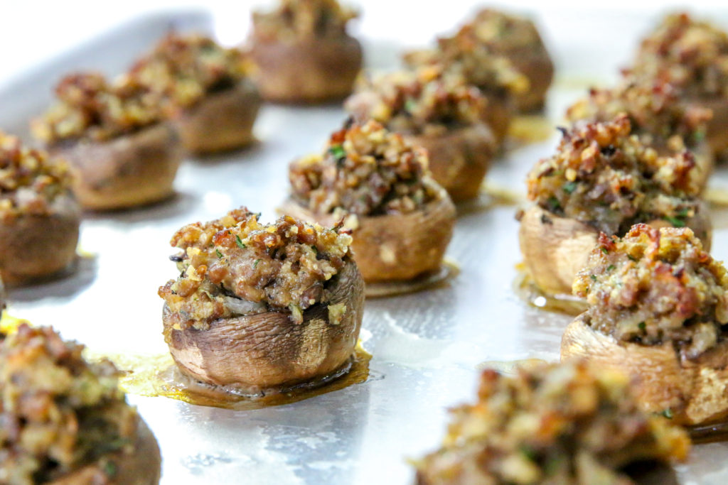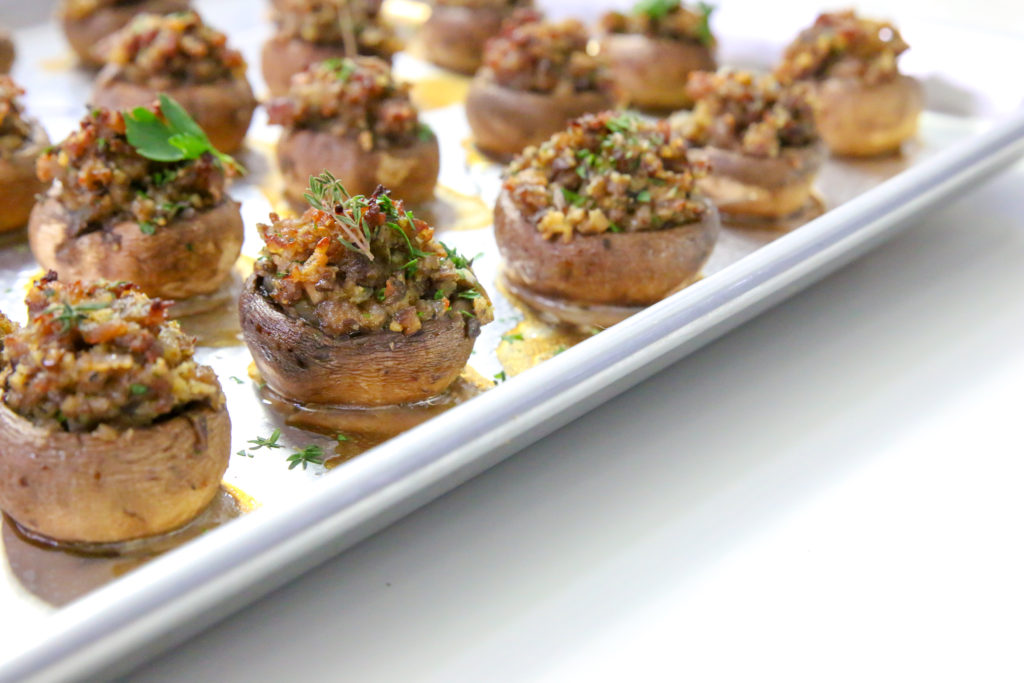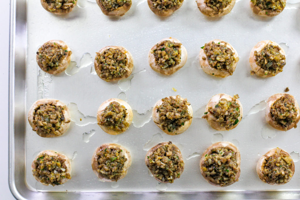 I can’t resist a stuffed mushroom anytime I see one. There’s something about that juicy, savory bite-sized bundle that makes it the perfect appetizer for any party. They kind of scream “holiday food” to me, but that’s probably because growing up, my sister and I would often make versions of stuffed mushrooms for our Thanksgiving dinners to try to seem fancy.  But truth be told, there’s nothing more humble, comforting, or classic.