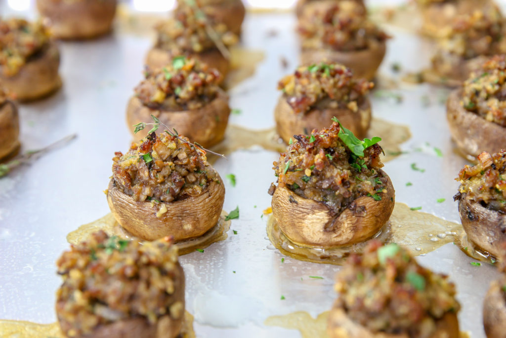 Serve them warm, and feel free to keep them on the baking sheet or garnish a platter with herbs and lay them out in a row, like tasty little soldiers. But no matter what you do, you can’t go wrong because it’s all about the taste, and these stuffed mushrooms will be everything you want them to be.