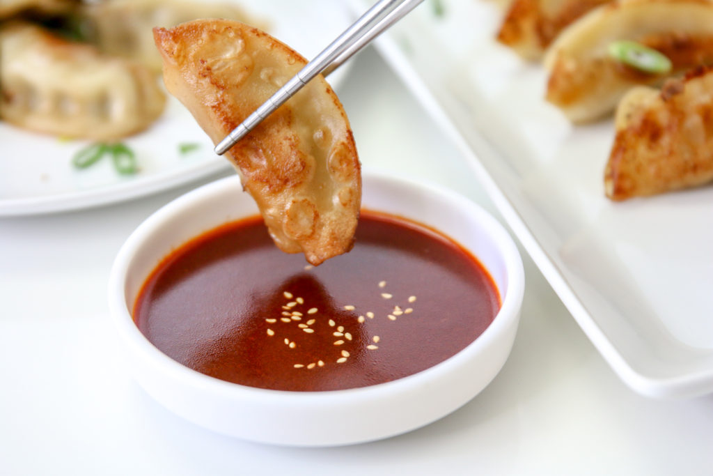 Both the Chicken and Vegetable and the Pork and Vegetable Ling Ling Asian Kitchen Potstickers do come with their own signature dipping sauce. That’s also nice because it’s made with a familiar soy sauce and vinegar base. So by all means, just heat up the sauce it comes with and call it a day!