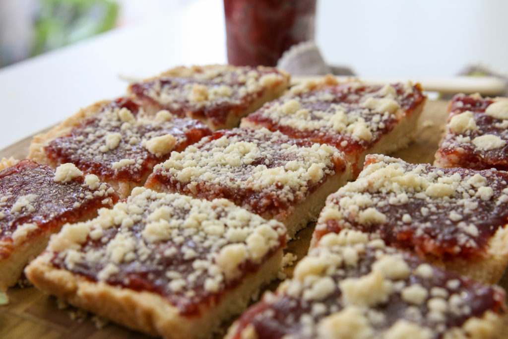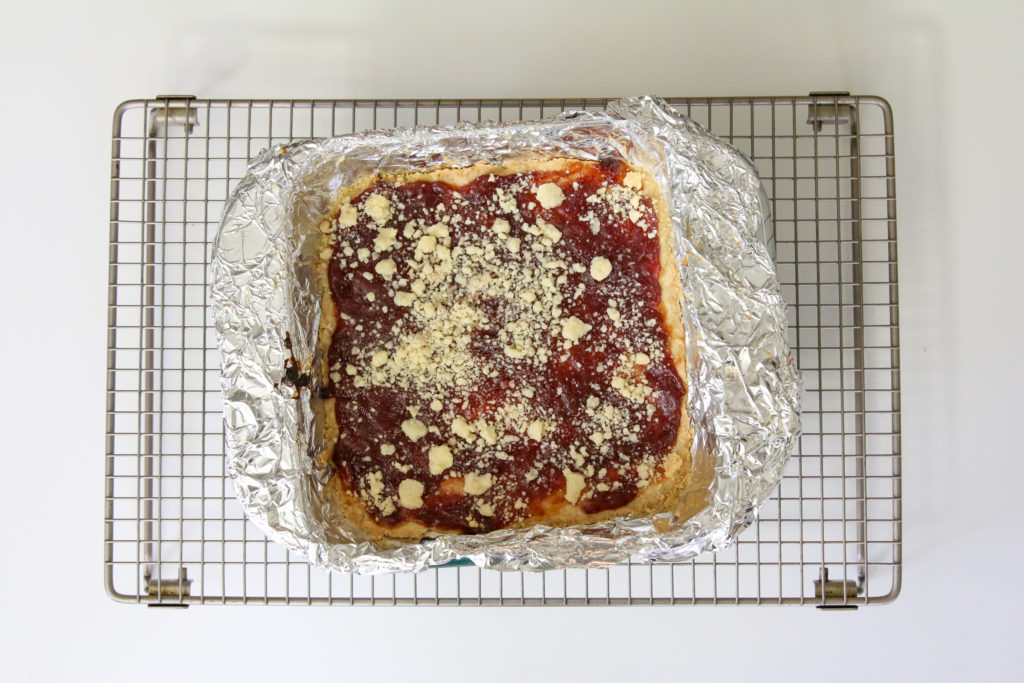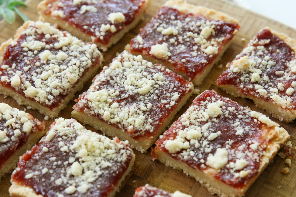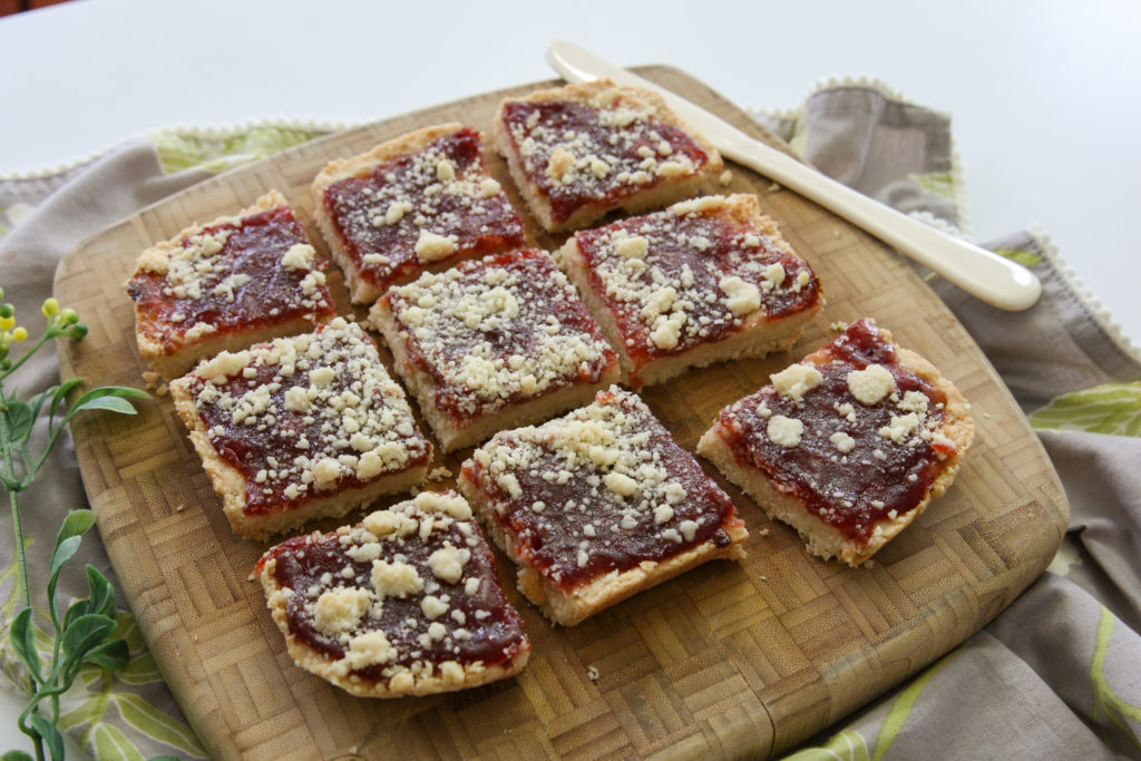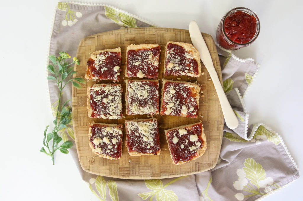 We’ve been eating these jam bars all week. I store them in the fridge and nibble on one with coffee as an afternoon pick-me-up. The last time I posted about these bars I did say I might experiment the next time with a peanut butter crust, but oops…I forgot to do that! Oh well, it just gives me an excuse to make these again soon!