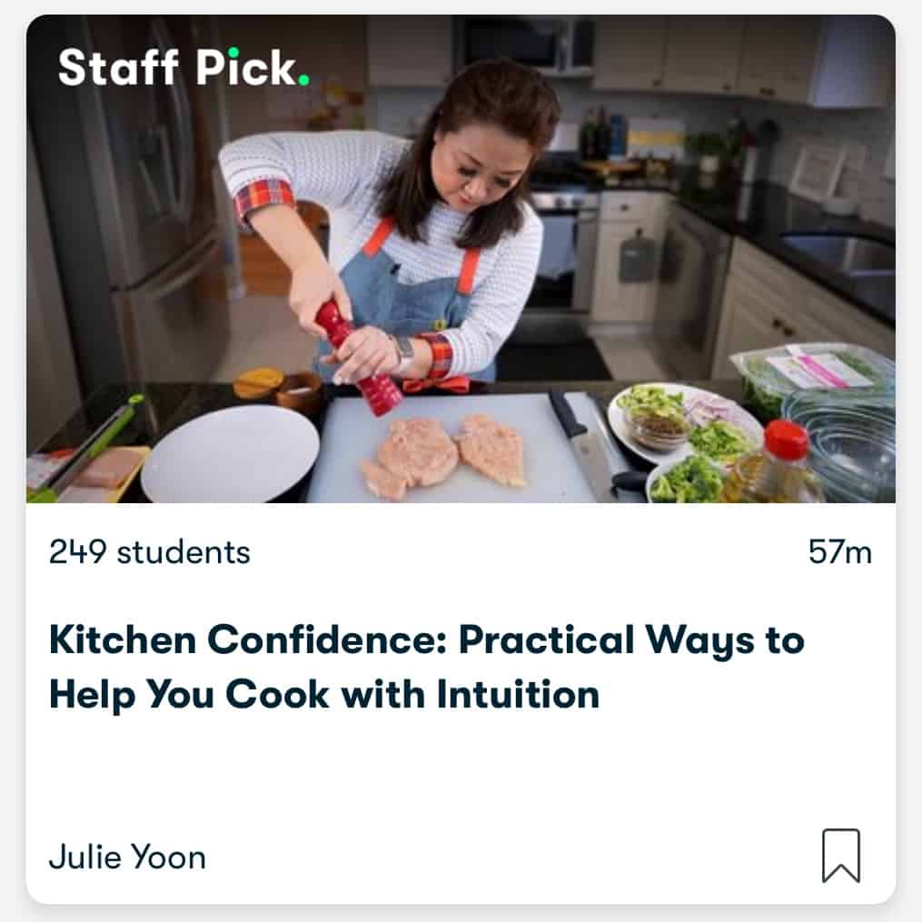 That’s why I’m excited to introduce our new Skillshare class called Kitchen Confidence: Practical Ways to Help You Cook with Intuition, and the best part is that you can watch for 2 weeks FREE no strings attached if you go through our referral link: https://link.chefjulieyoon.com/Skillshare1