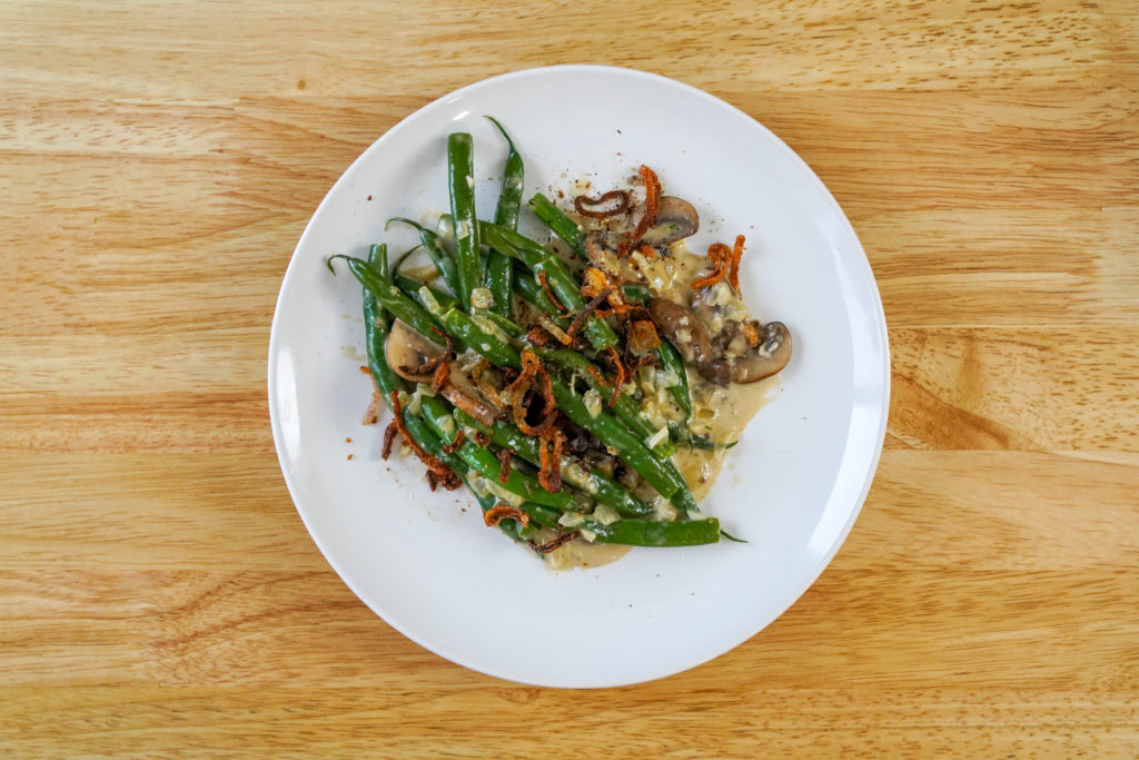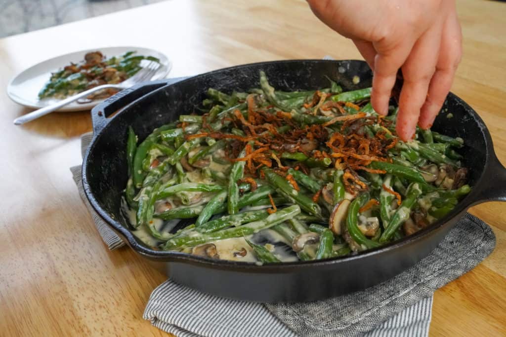 Using fresh green beans, fresh shallots, and homemade cream sauce for this dish is what sets it apart. You won’t ever want to go back to canned!