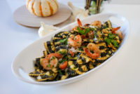 Bring a large pot of salted water to a boil. Add a small pinch of salt to your shrimp and massage it lightly with your hand (this will make the shrimp more juicy and flavorful).